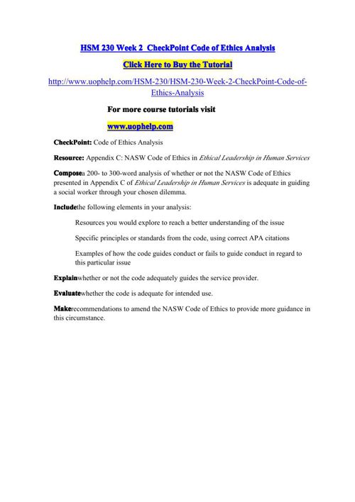 Hsm 230 Week 2 Checkpoint Code Of Ethics Analysis By Online2014 Issuu
